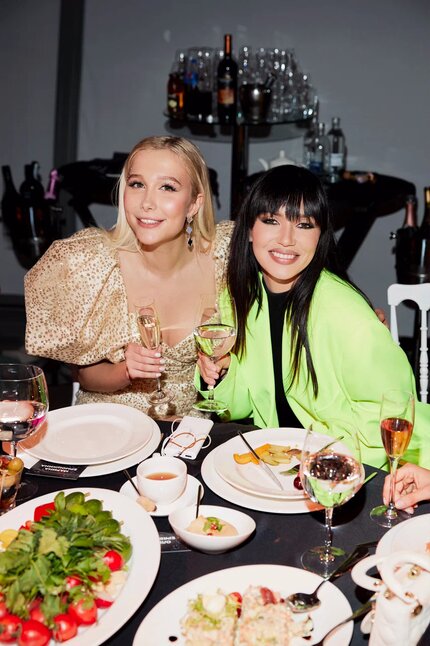Далее гости попадали в специальную комнату с надписью «Черный PR», где их ждал эпичный продюсер в золотых цепях, сидящий на троне, а монашки-танцовщицы кормили его анчоусами, рядом в ванной с грязью (видимо, состоящей из слухов и скандалов) плавали модели.