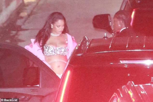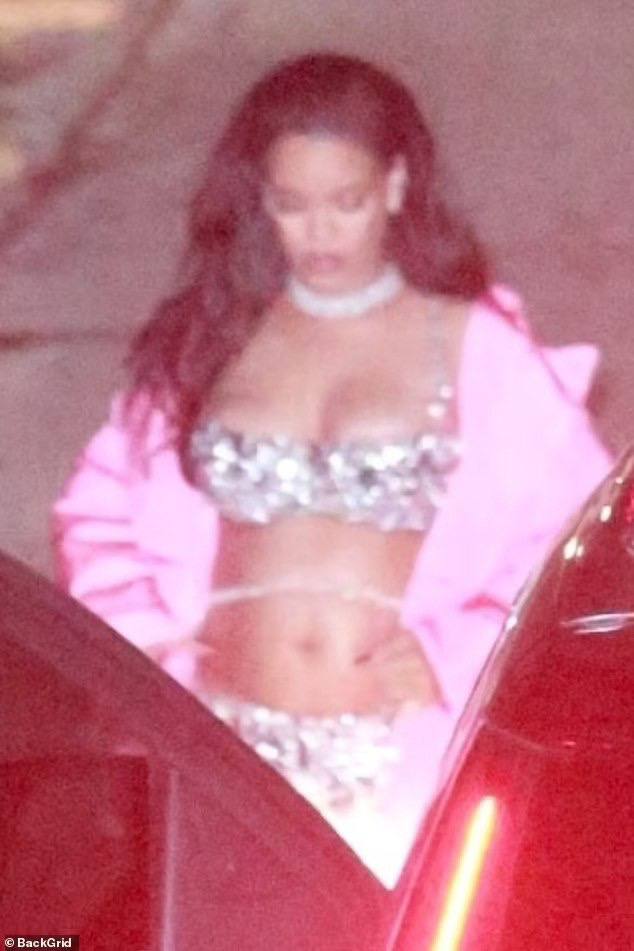 Среди гостей была замечена и королева РиРи. Беременная певица выбрала весьма открытый наряд: блестящий топ-бандо и брюки. Рианна дополнила образ эффектным розовым пальто, а так же красивыми украшениями. Так, например, помимо ослепительных сережек и бриллиантового колье, содержащее около 96 карат розовых камней, на исполнительнице была цепочка с бриллиантами, которая украшала заметно округлившийся животик РиРи. Стоимость такого украшения составляет 1,8 миллиона долларов, а это 135 млн рублей.