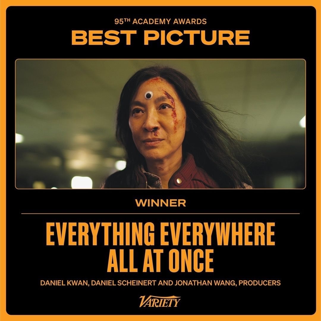 Триумфатором вечера стал фильм Дэна Квана и Дэниэла Шайнерта — «Все и Сразу». Картина удостоилась сразу семи статуэток: лучший фильм, лучшая режиссура, лучший оригинальный сценарий, лучший монтаж, лучшая актриса второго плана — Джейми Ли Кертис, лучший актер второго плана — Ке Хюи Куан, а так же лучшая женская роль - Мишель Йео.
