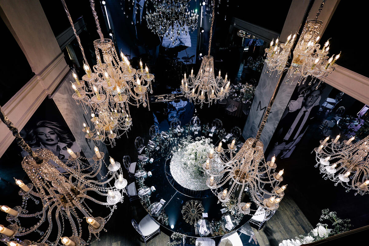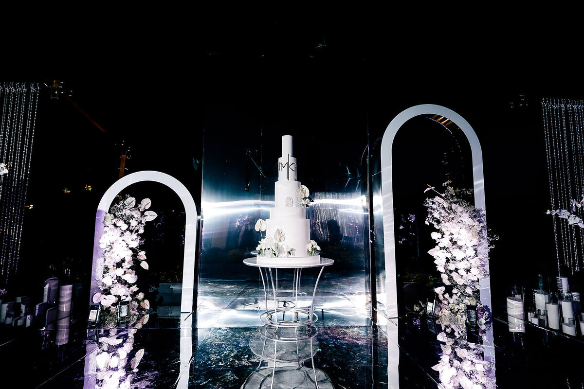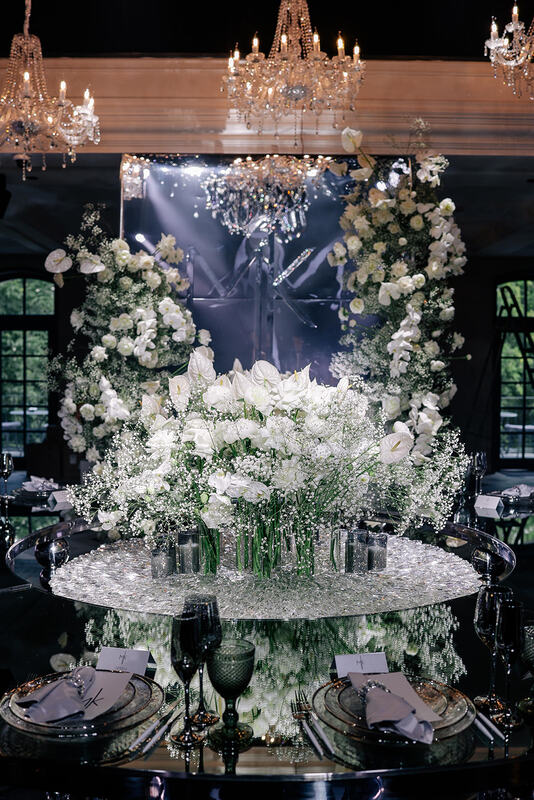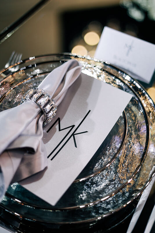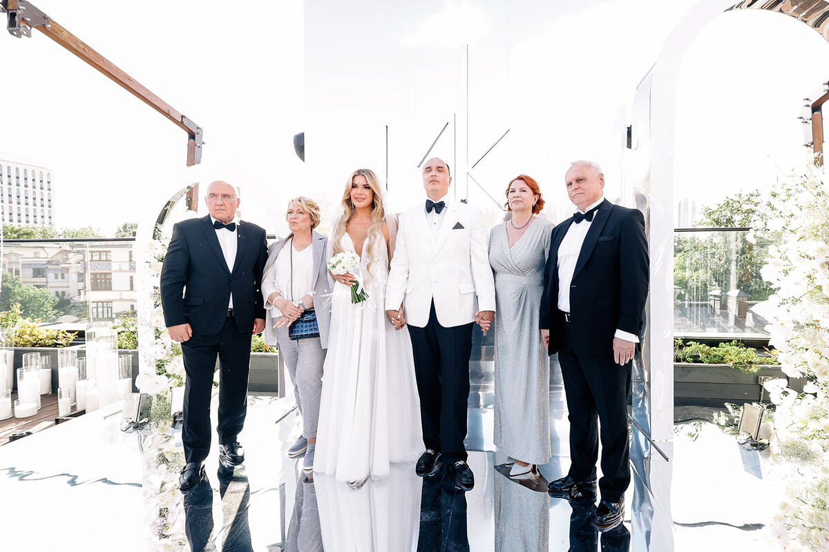 инициалами «Михаил-Катя», а на Михаиле был белоснежный смокинг в стиле Tom Ford. Первые образы обошлись паре в