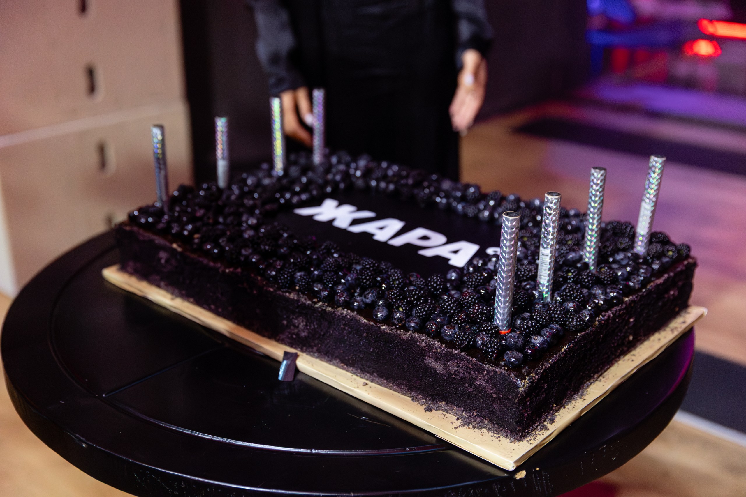 Основной десерт ждал гостей на сцене. Торт со специальным дизайном предстоящей ЖАРА MEDIA AWARDS от компании «Особенный наполеон».