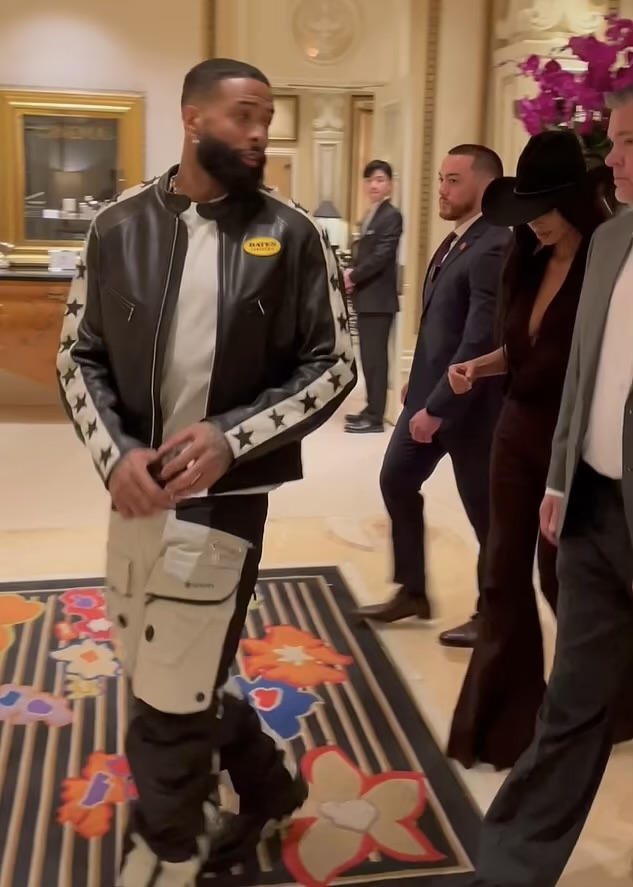 Папарацци успели заснять, когда Ким и Оделл покидали отель. Ким была одета в темно-коричневый топ, брюки-клеш, казаки и черную шляпу, а Оделл вышел в белой футболке, черной куртке с изображением звезд на рукавах, черно-белых брюках и массивных ботинках.