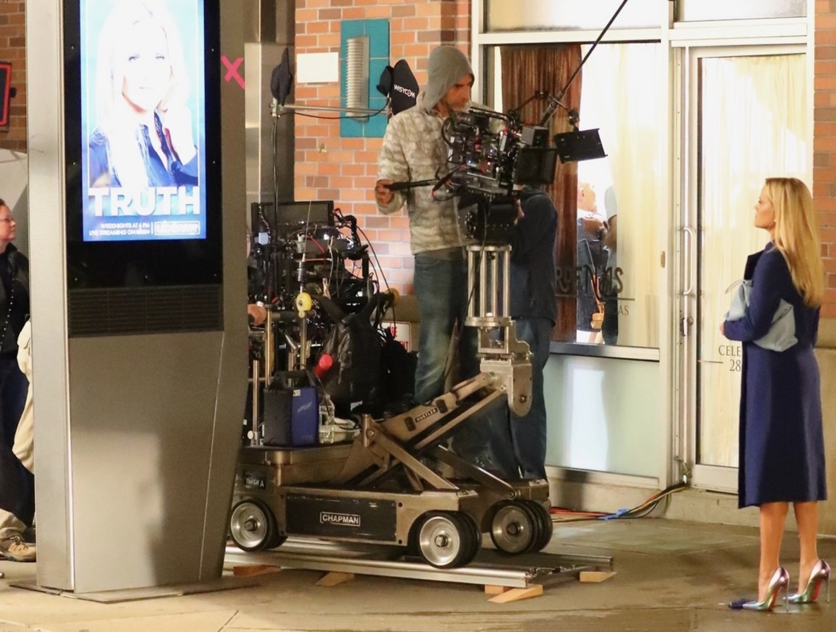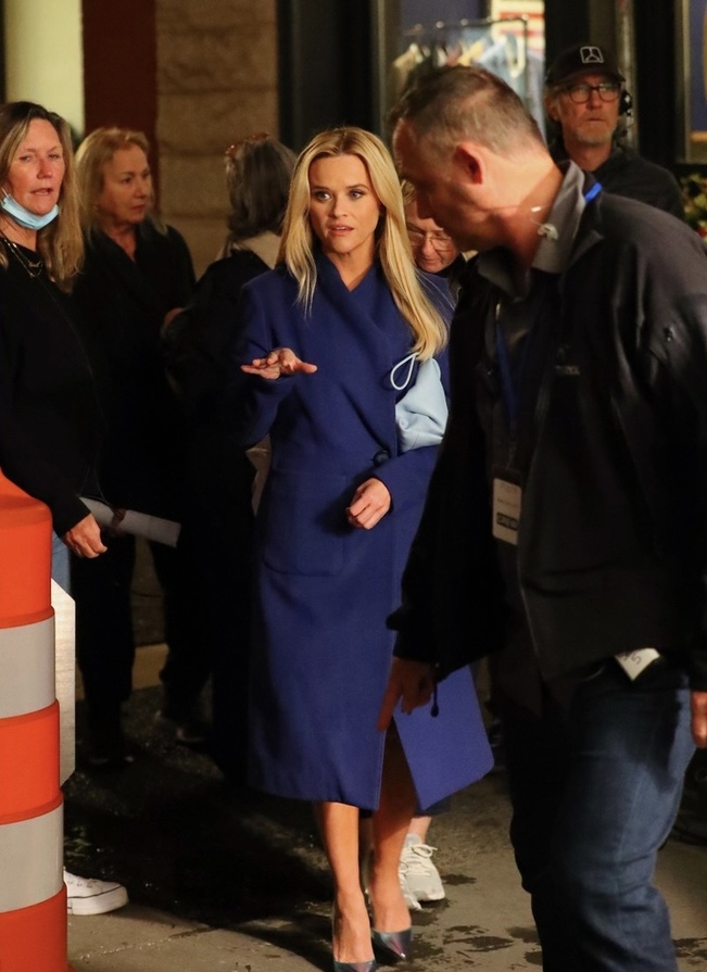 Риз Уизерспун ночью в Нью-Йорке на съемках 3 сезона «Утреннего шоу»
