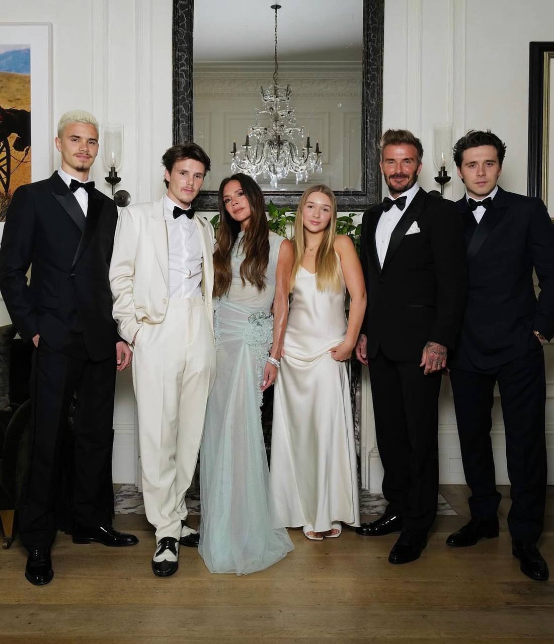 В этот особенный день рядом была семья: супруг Дэвид и все четверо детей – Бруклин, Ромео, Круз и дочь Харпер. Правда, на общих фотографиях не было жены старшего сына Дэвида и Виктории, Николь Пельтц. Оказывается, ей пришлось в этот вечер остаться с заболевшей бабушкой.